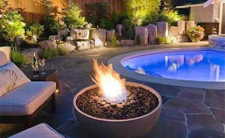 We love how this fire pit blends so well wit the concrete surrounding the poor. It makes for a cleaner, overall style and one that fits a minimalistic vision. The grey seating offsets the textural neutrals as well.